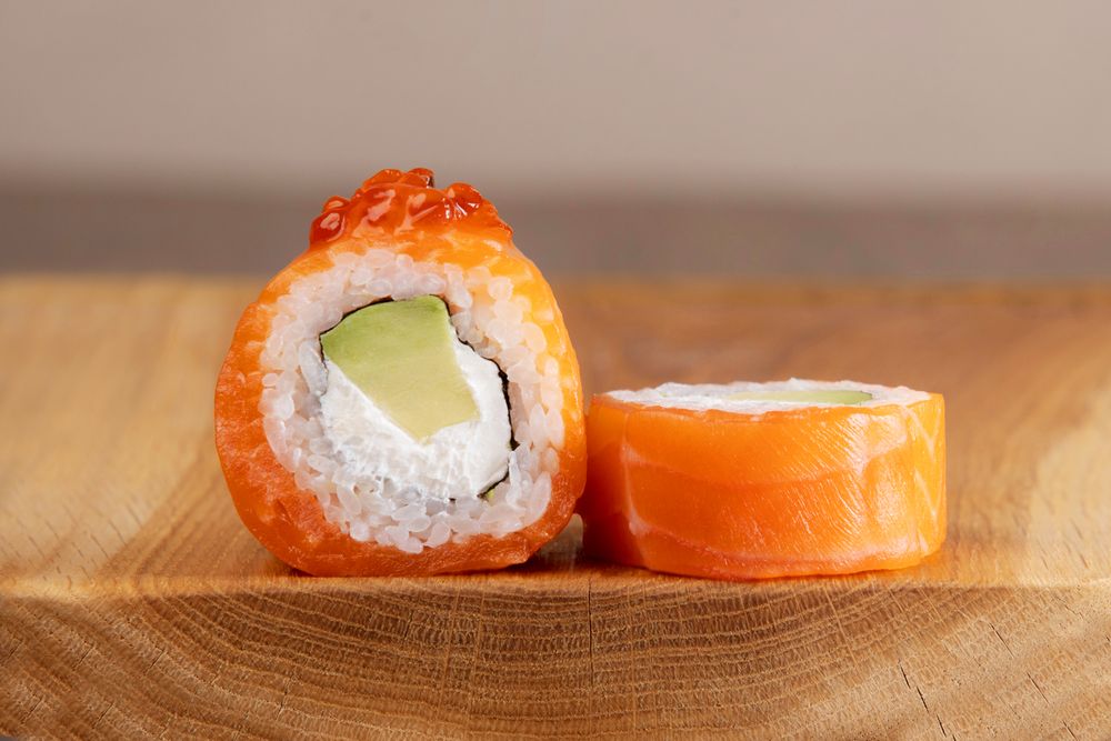 рис, нори, сливочный сыр, лосось, авокадо, икра лосося