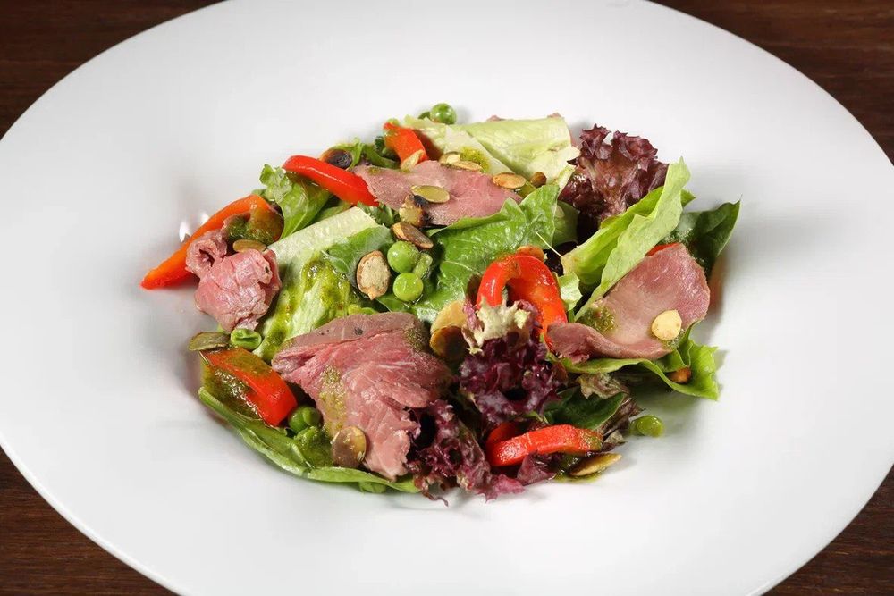 Салат с маринованной говядиной в устрично-трюфельном соусе