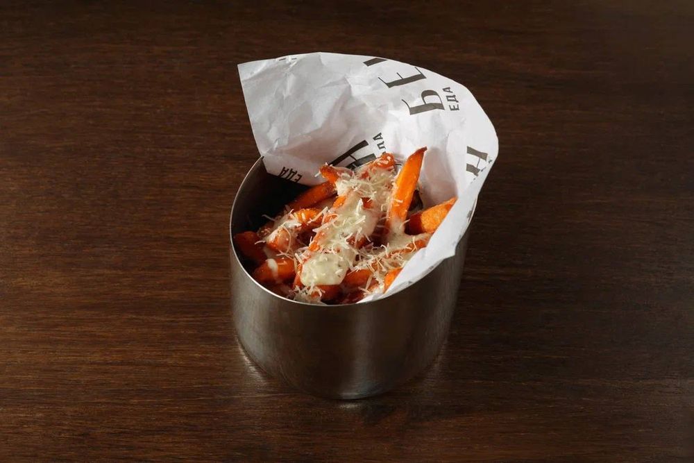 батат, соус трюфельный, сыр пармезан